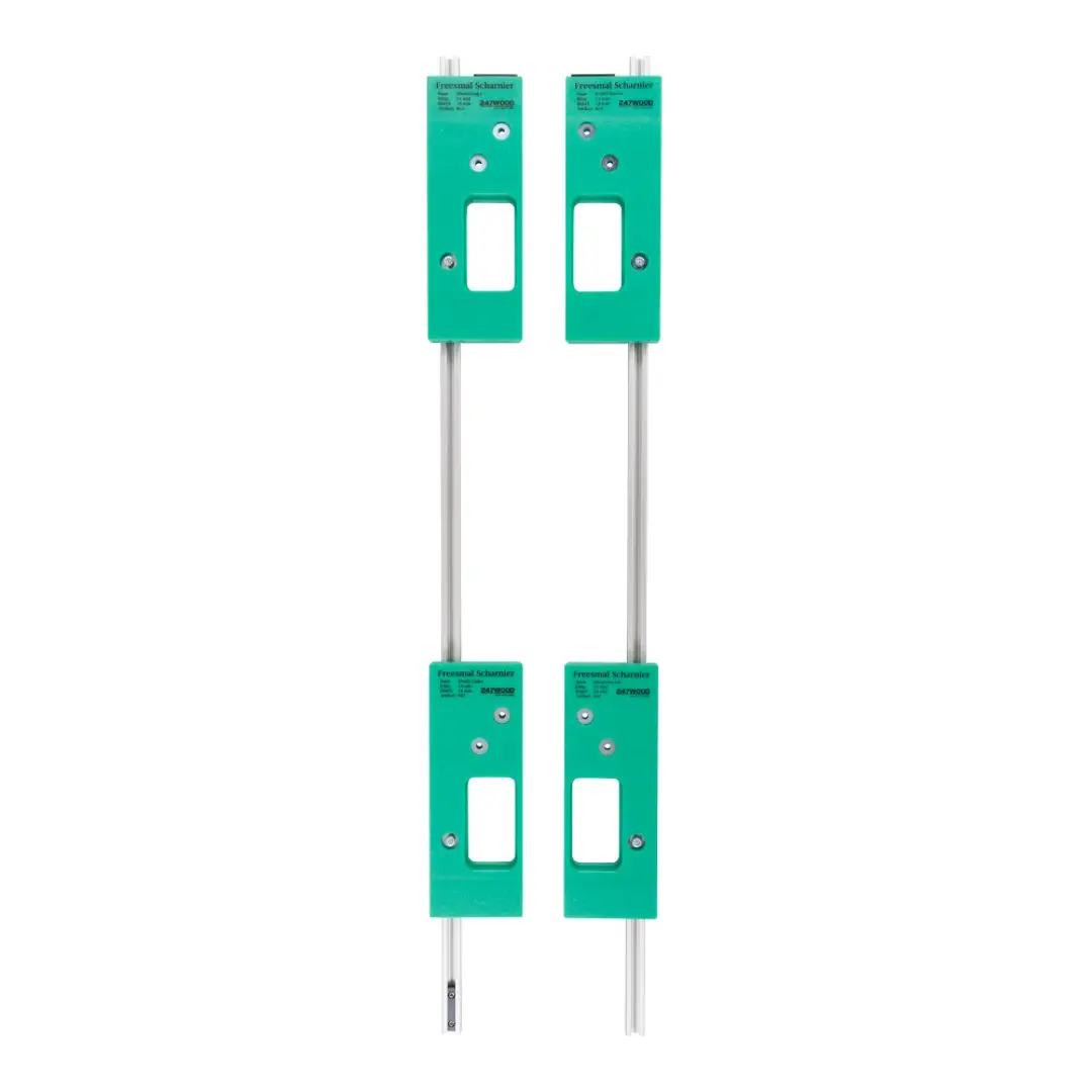 Met deze compacte in hoogte verstelbare 4-delige set hangt u gemakkelijk zowel links- als rechtsdraaiende deuren af met een maximale hoogte van 238 centimeter. Voor correct gebruik van de freesmallen dient u de bovenfrees uit te rusten met een 24 millimeter kopieerring en een 18 millimeter frees. De meegeleverde freesmallen zijn volledig CNC bewerkt en gemaakt van een zeer duurzame technische kunststof.