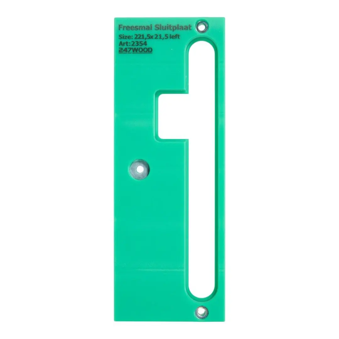 Met deze freesmallen freest u gemakkelijk de sluitplaat. De freesmal is volledig CNC bewerkt en gemaakt van een zeer duurzame technische kunststof. Voor correct gebruik van de freesmal dient u de bovenfrees uit te rusten met een 24 millimeter kopieer-ring en een 18 millimeter frees.